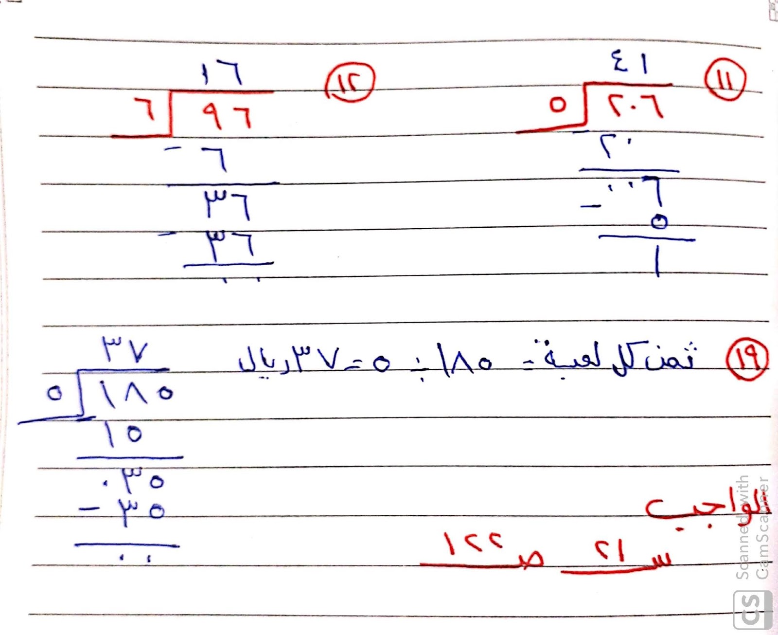 حل رياضيات رابع القسمة على عدد من رقم واحد صفحة 12 41