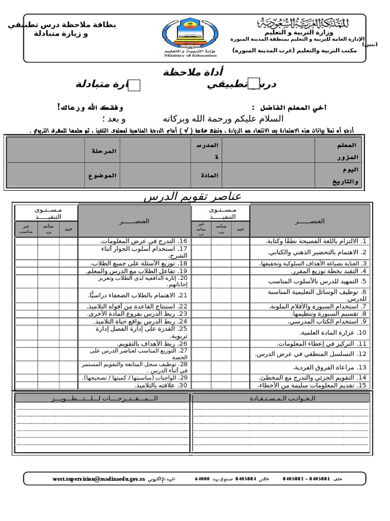 Doc بطاقة ملاحظة درس أحمد الرويشد Academia Edu