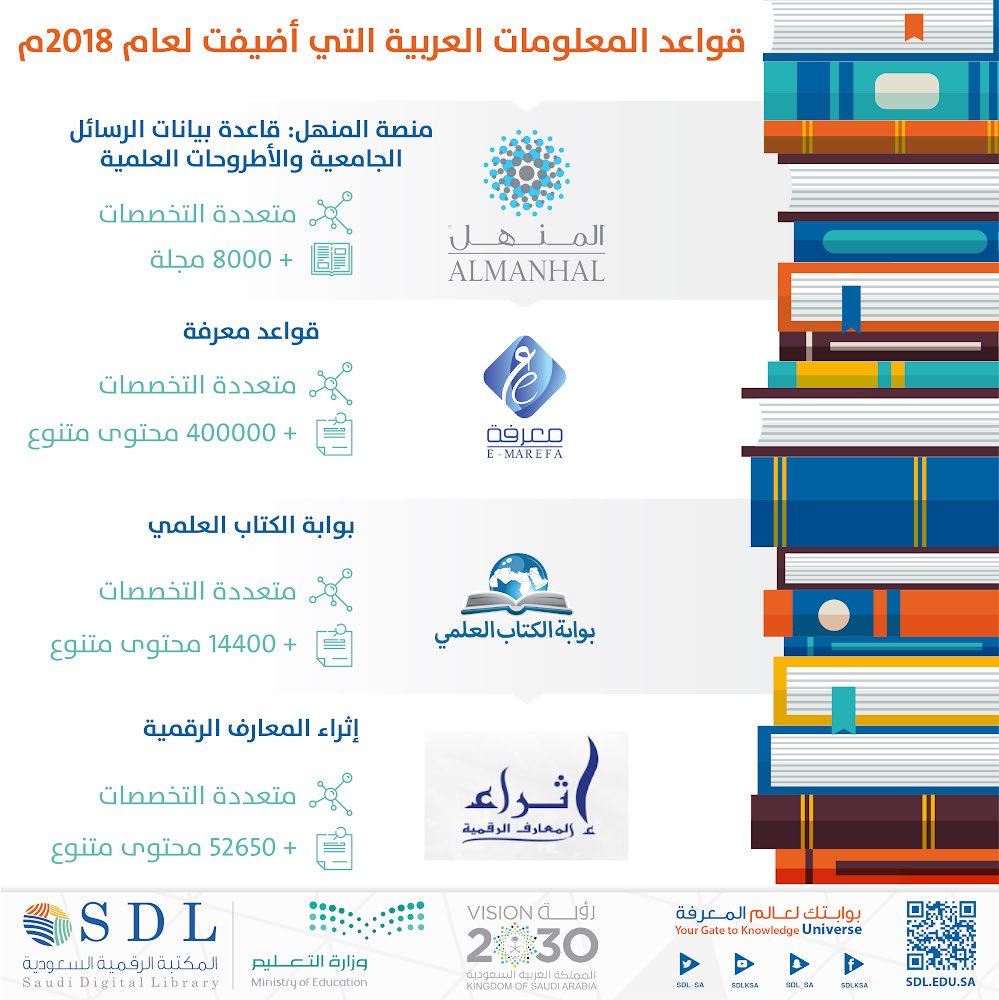 المكتبة الرقمية السعودية Sdl على تويتر بشرى لأعضاء هيئة التدريس وطلبة الجامعات والمبتعثين إثراء للمحتوى العربي من مصادر المعلومات الرقمية وتلبية للاحتياج المعلوماتي اشتركت المكتبة الرقمية السعودية في ٤ قواعد معلومات عربية جديدة لعام