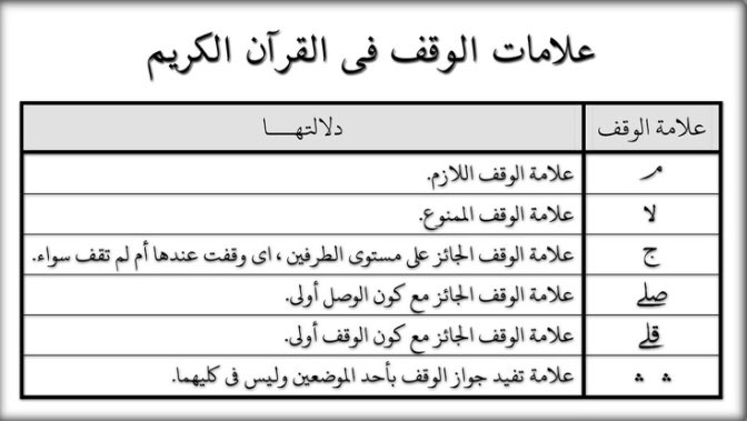 علامات الوقف في القرآن الكريم للصف الخامس