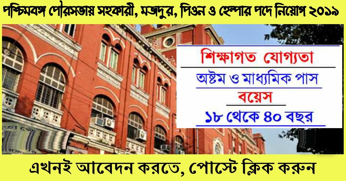 West Bengal Department Of Municipal Affairs Recruitment 2019 Apply For Cashier Mazdoor Peon Sanitary Assistant Posts